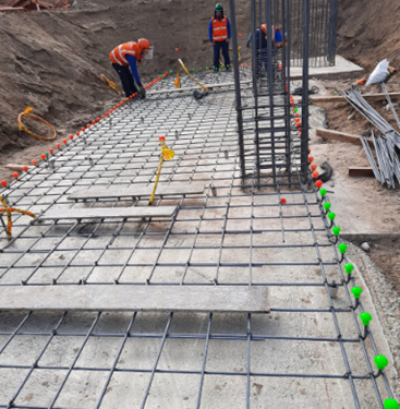 - Construcción de edificaciones: Edificio de control, caseta de vigilancia y muros de seguridad perimetrales.