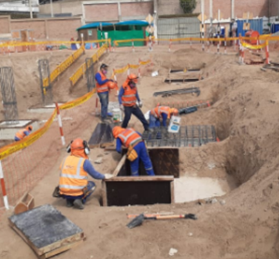 - Canalizaciones y pistas: Construcción de canaletas para cables, buzones, pistas y veredas.