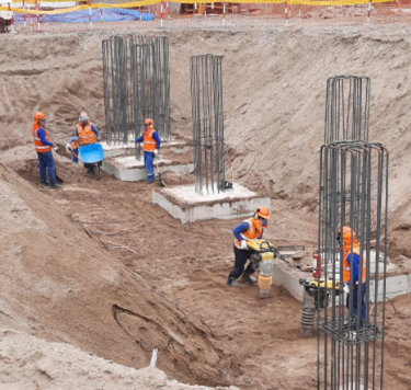 - Movimiento de tierras: Replanteo, nivelación y excavación de bases para equipos y estructuras.